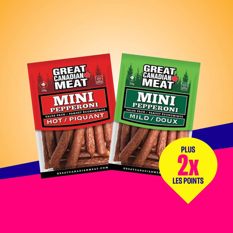 Comblez vos fringales avec les collations Great Canadian Meat! Achetez un paquet pour 8,99 $ et obtenez 2X les points!