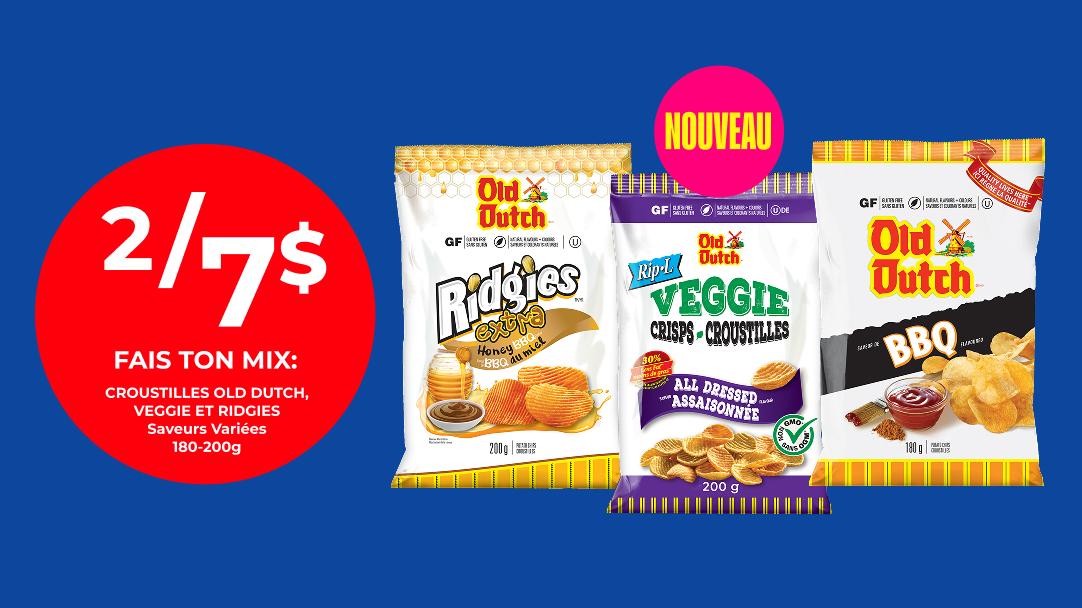 2 pour 7 $ Croustilles Old Dutch, Veggie et Ridgies