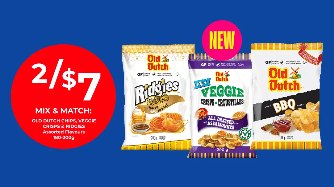 2 for $7 Old Dutch Chips, Veggies Crisps & Ridgies