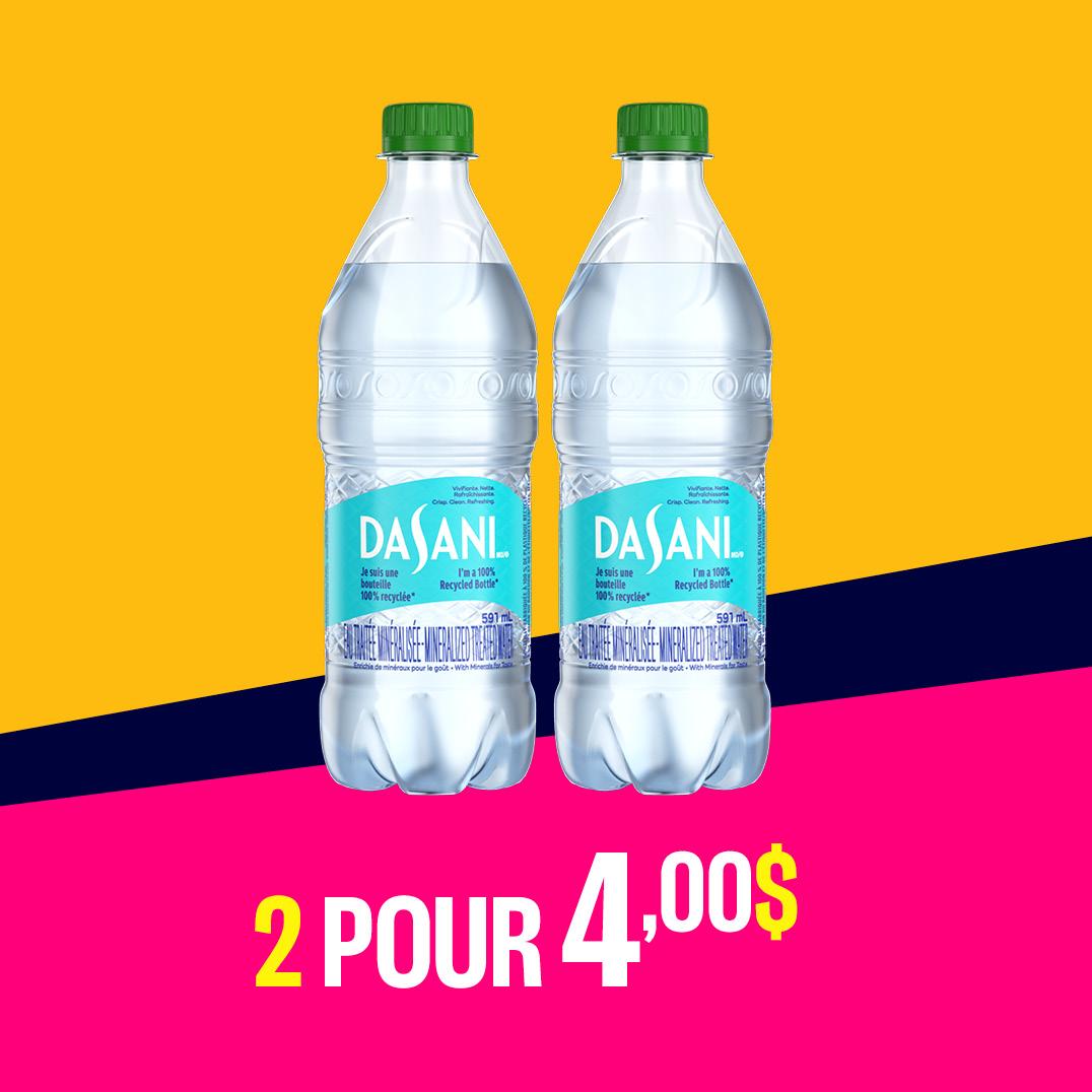Ne manquez pas ces offres rafraichissantes! Pour une durée limitée, achetez 2 bouteilles d’eau Dasani (591 ml) pour 4 $.
