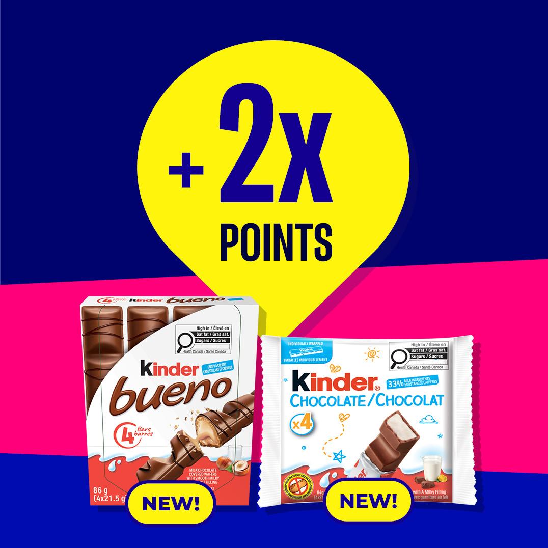 Deal runs from April 1, 2026, 12:00:00 AM to June 9, 2026, 11:59:59 PM. You’ll receive the points multiplier set out below when you buy 2 Kinder king bars (84-86g) for $6. Members will earn 4 Journie points for every $1 spent on eligible products purchased at participating locations. Deposit, taxes, and levy where applicable. Points multiplier is applied only to the eligible products and not to the total value of your purchase. Limit of 6 products per transaction, per person, per day. For participating locations, visit the Map in your Journie Rewards app or the Store Locator on journie.ca to find a store where you can earn Journie Rewards. Not applicable at independent dealer locations.