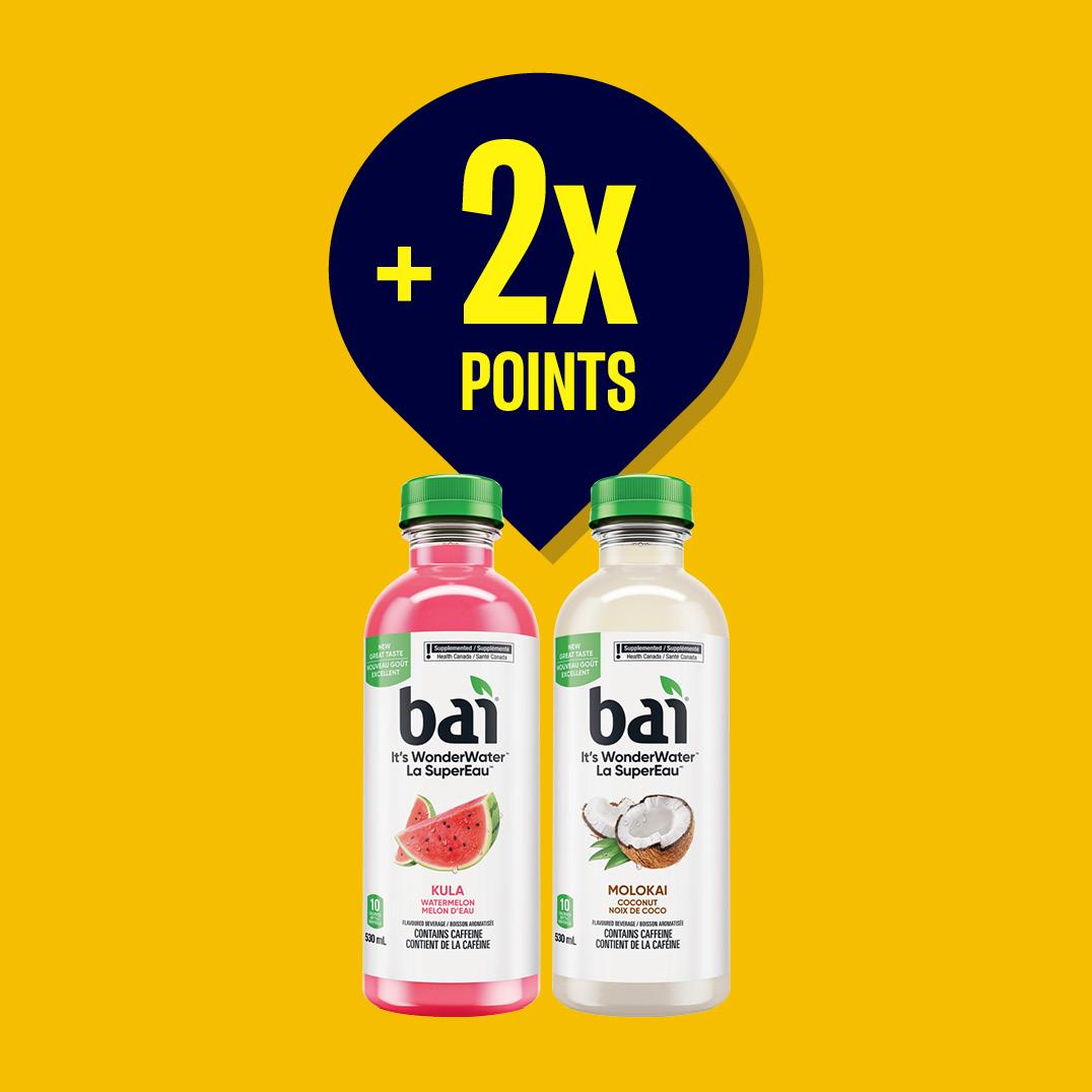 Stay refreshed and get rewarded! Pick up 3 Bai drinks for just $6 and earn 2X the points while you're at it. With bold fruit flavours and no artificial sweeteners, Bai is a tasty way to hydrate and treat yourself.