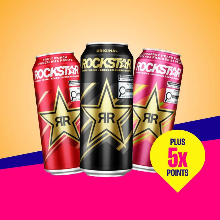 Earn 5X the points with Rockstar 473ml! Buy 2 for $5.50 or 3 for $7 and rack up rewards faster.