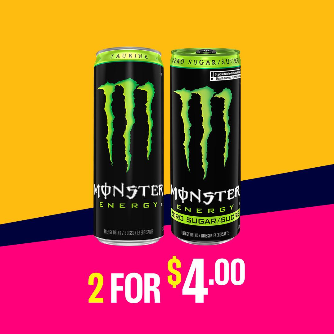 Get the energy you crave for less! For a limited time, grab any 2 Monster Energy drinks (355ml) for just $4.