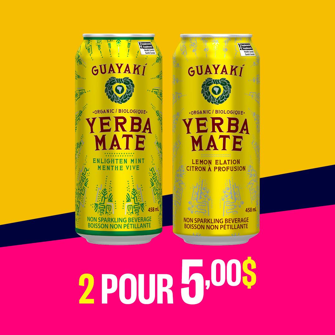 Faites le plein d’énergie avec intention. Les canettes Guayakí Yerba Mate sont offertes à 2 pour 5 $ pour un temps limité. Économisez 1 $ et profitez d’un p’tit boost d’énergie biologique et revigorante. Venez chercher cette aubaine dans tous les magasins où vous pouvez accumuler des récompenses Journie !