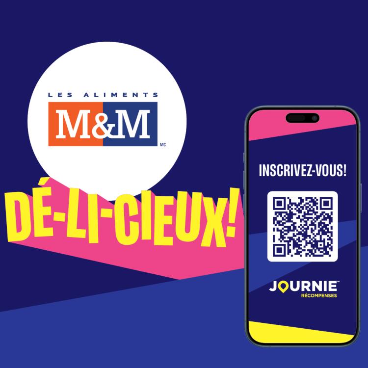Téléchargez l’appli Journie et liez vos comptes Récompenses Journie et Les Aliments M&MMC pour multiplier les occasions d’accumuler des points. Vous obtiendrez par exemple 1 point pour chaque dollar dépensé dans les magasins Les Aliments M&MMC participants. Liez vos comptes et prenez la voie rapide des économies!