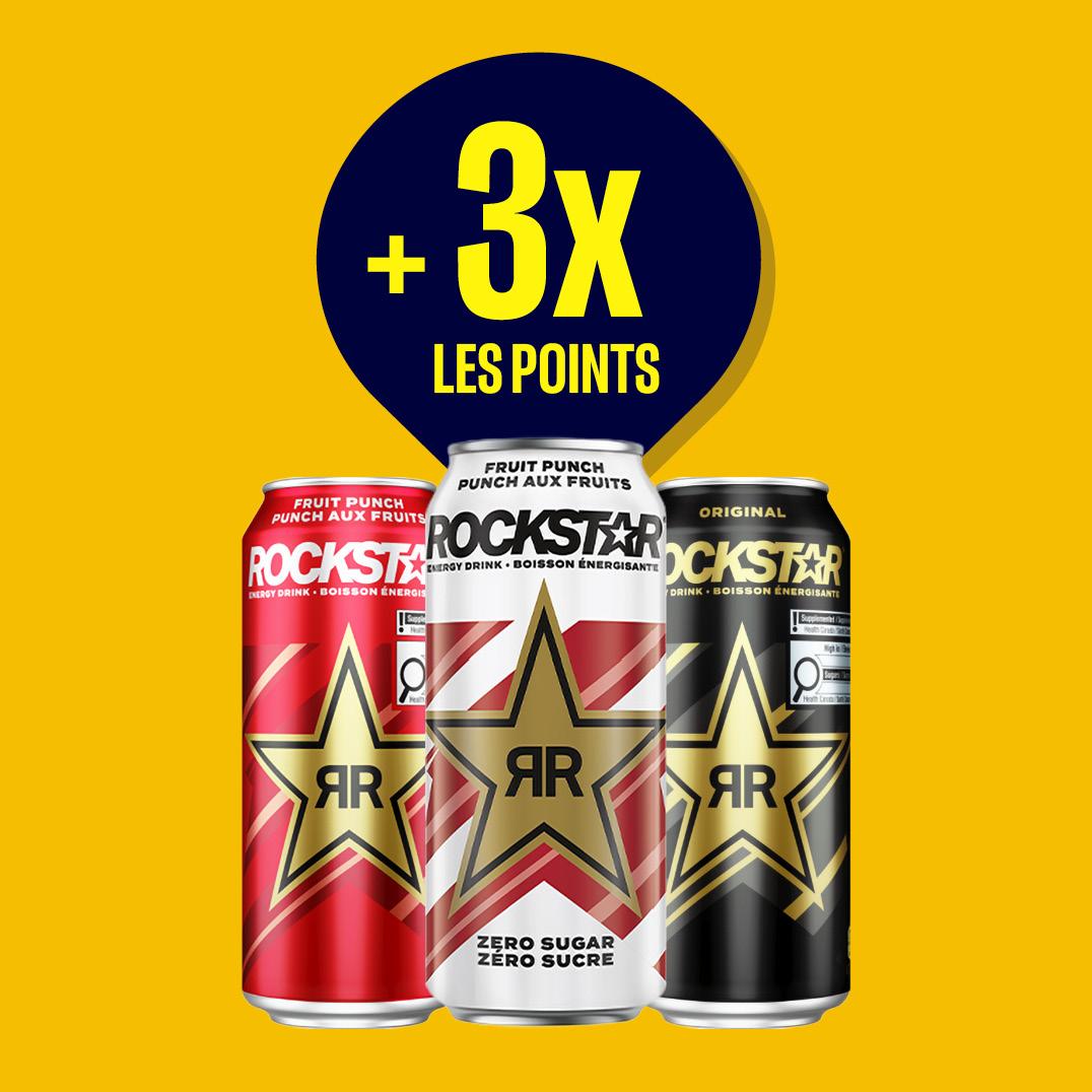Énergisez vos Fêtes avec Rockstar Energy! Achetez-en 2 pour 5,50 $ ou 3 pour 7 $ et accumulez 3X les points.