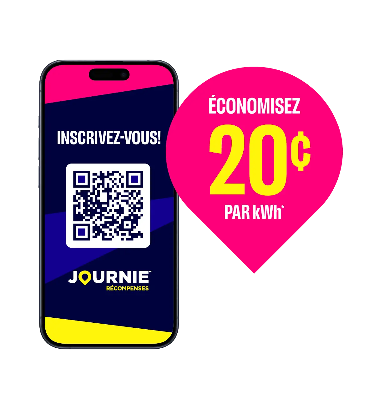 Utiliser l’appli Journie et les bornes de recharge pour VE Marché Express, c'est simple comme bonjour.